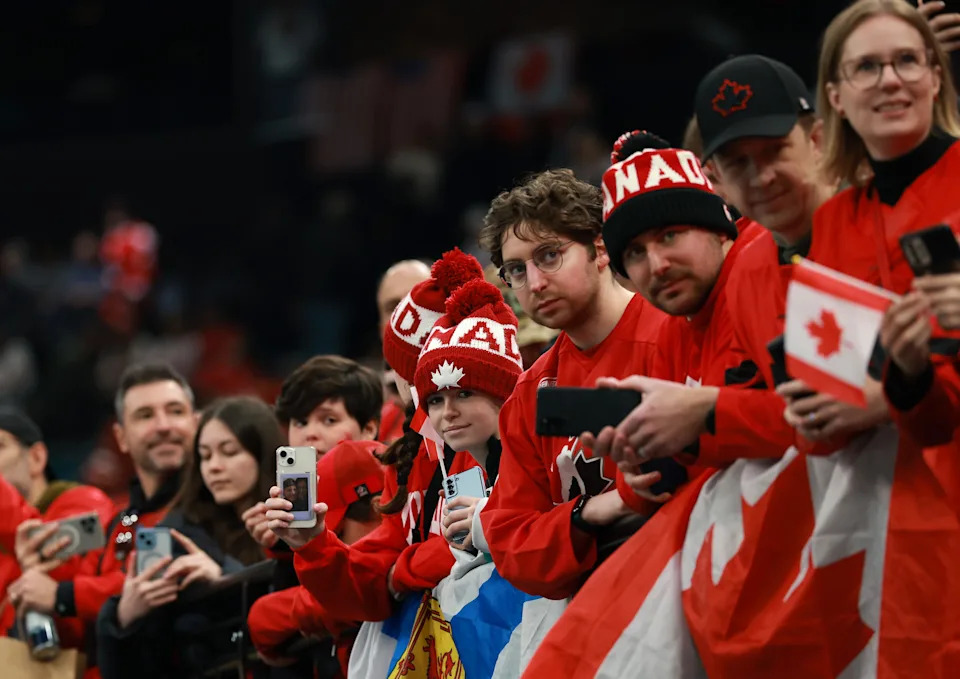 Fans of Team Canada look on prior to the Men’s Gold Medal match between Canada and the United States on day 16 of the Milano Cortina 2026 Winter Olympic games at Milano Santagiulia Ice Hockey Arena on Feb. 22, 2026 in Milan, Italy.
