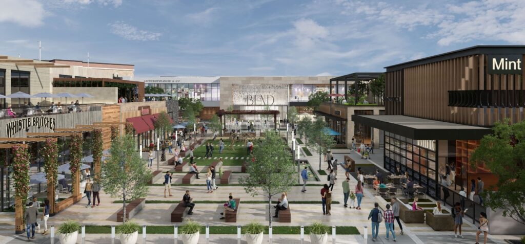 Renderings of The Bend, a redevelopment of the Shops at Willow Bend (Credit: Centennial)