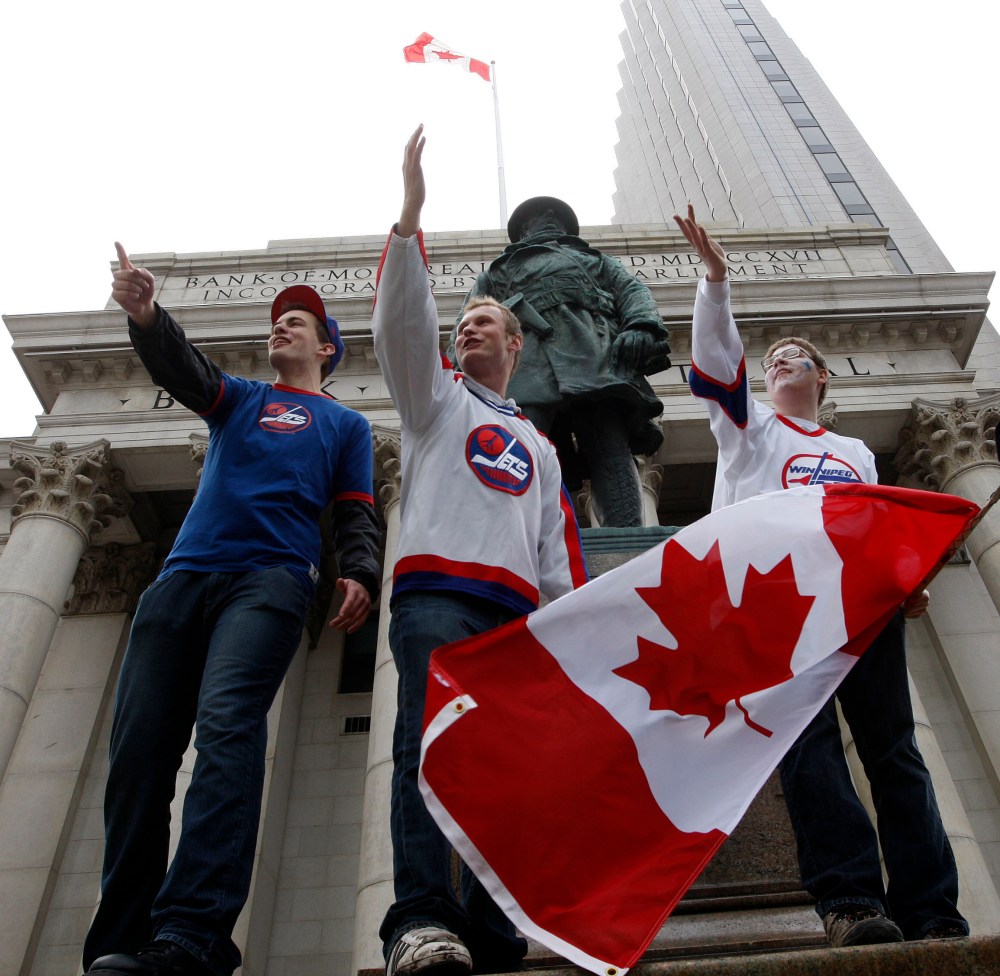 A huge crowd of fans, many decked out in original Winnipeg Jets gear, gathered at the MTS Centre May 31, 2011 to hear Mark Chipman and Gary Bettman announce Winnipeg would again have a team in the NHL.