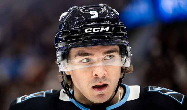 Utah Mammoth right wing Clayton Keller (9) looks to the action against the Minnesota Wild during an NHL game held at the Delta Center in Salt Lake City on Friday, Feb. 27, 2026. | Isaac Hale, Deseret News