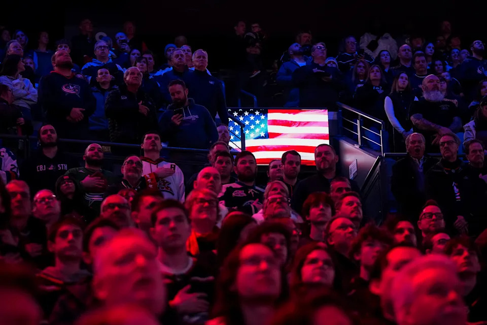 The National Anthem is performed prior to the NHL hockey game between the Columbus Blue Jackets and the Nashville Predators at Nationwide Arena in Columbus on March 3, 2026.
