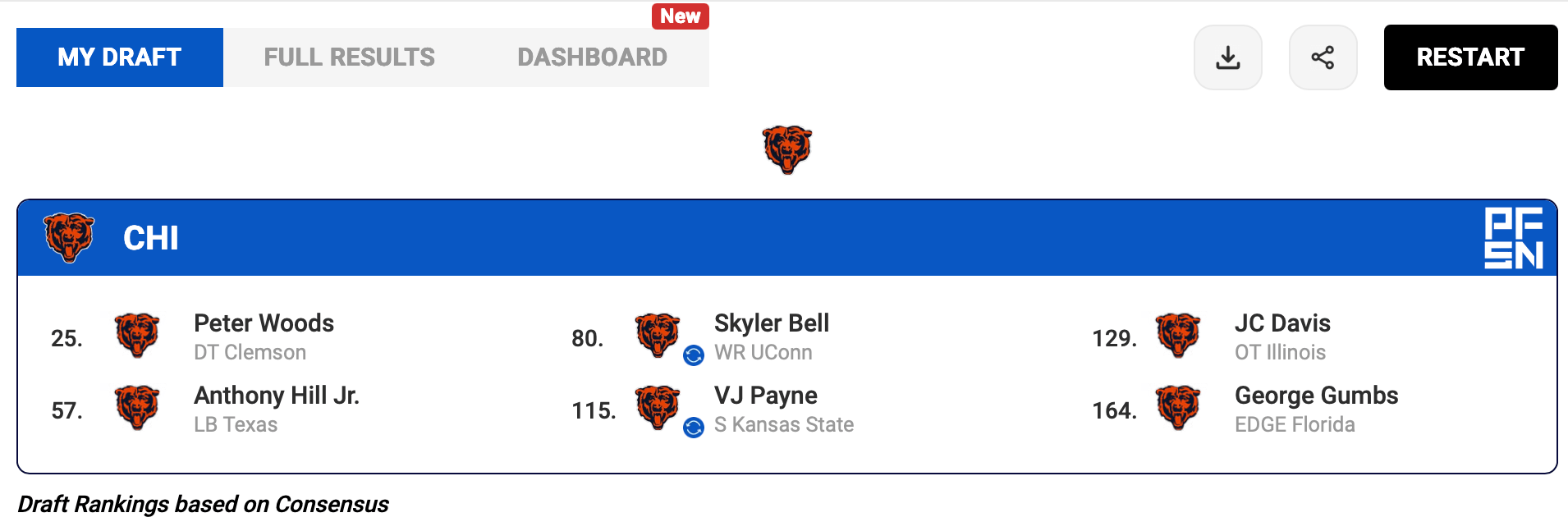 These picks were chosen using PFSN’s free NFL Mock Draft Simulator: