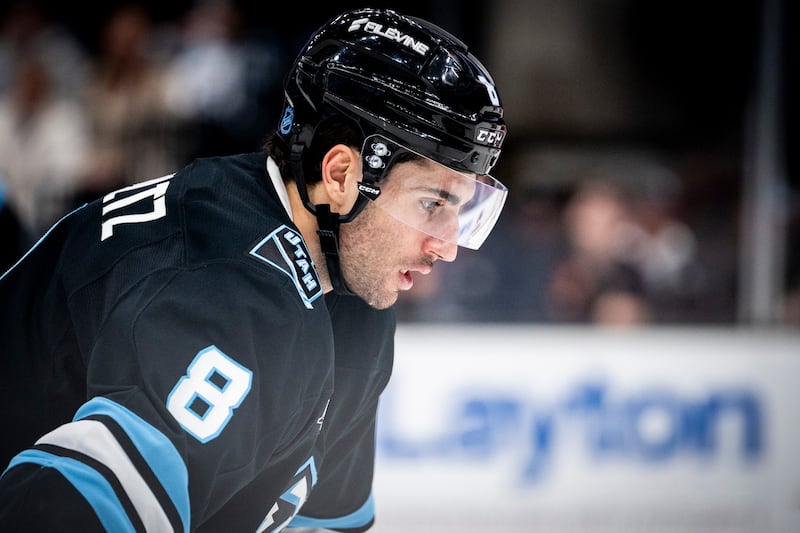 Utah Mammoth center Nick Schmaltz (8) prepares for a faceoff against the Detroit Red Wings during the third period of an NHL game held at the Delta Center in Salt Lake City on Wednesday, Feb. 4, 2026. | Isaac Hale, Deseret News