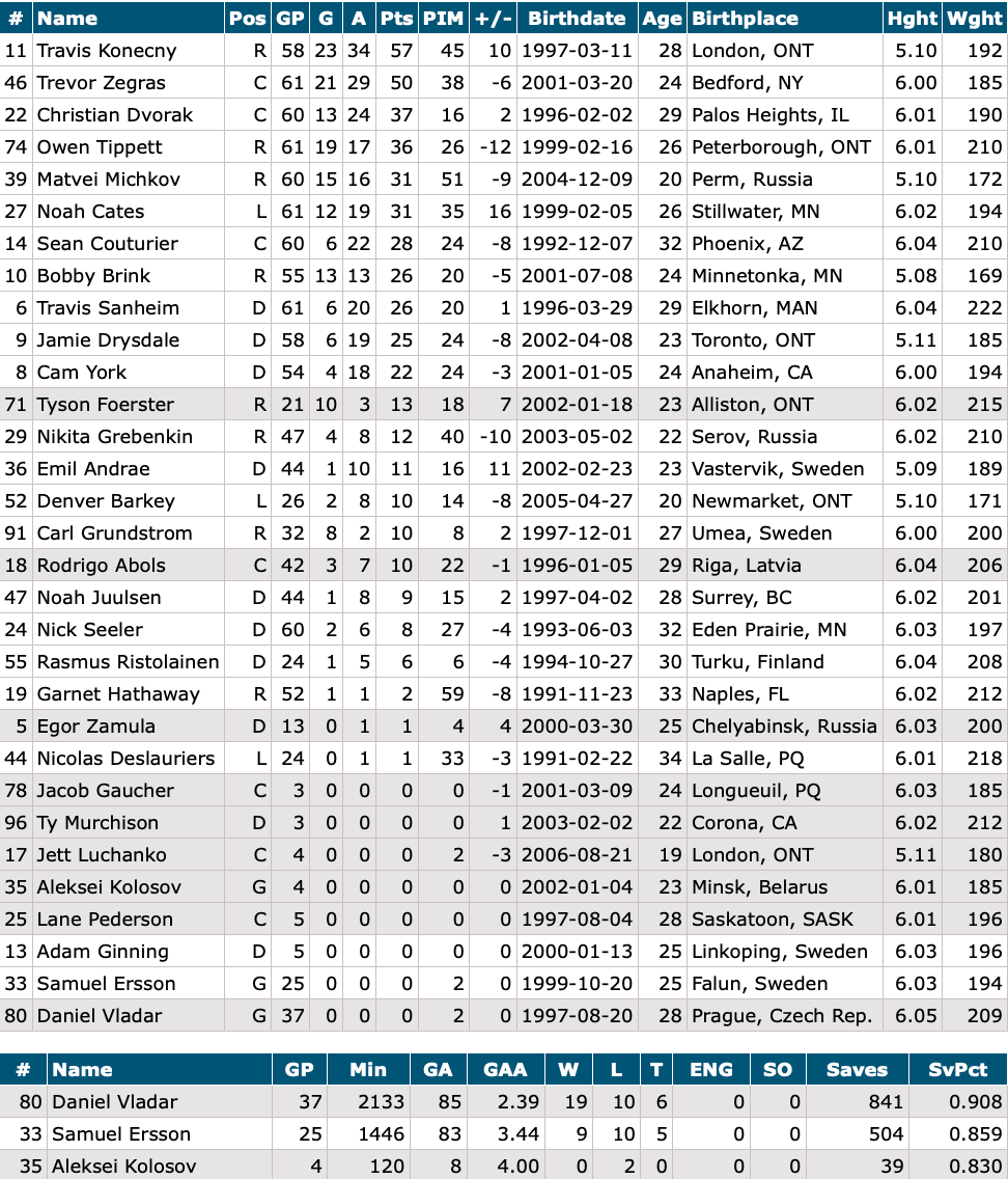Goalies: Dan Vladar, Samuel Ersson