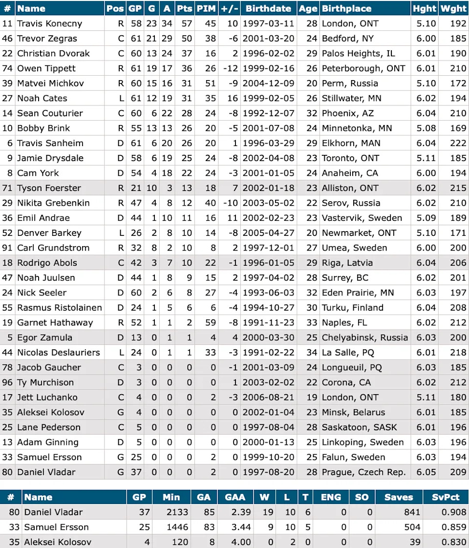 Goalies: Dan Vladar, Samuel Ersson