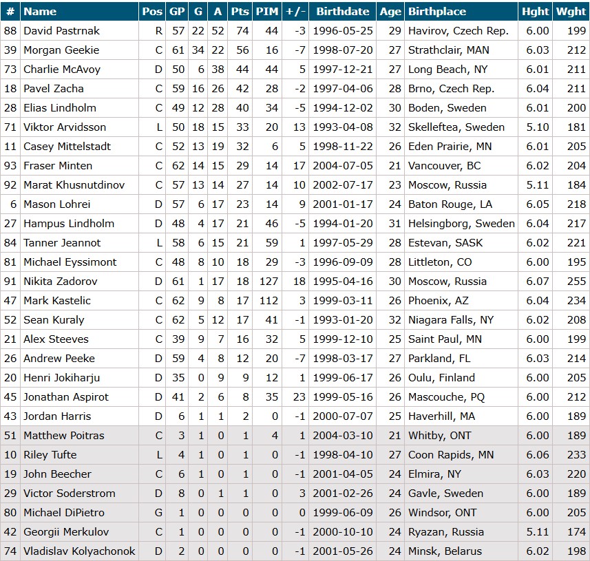 Marat Khusnutdinov – Elias Lindholm – David Pastrnak