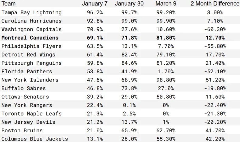 We’ll also evaluate the changes in odds from various Eastern Conference teams competing with the Habs for a playoff spot.