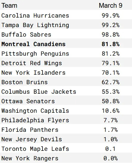 All Montreal Canadiens and NHL playoff odds via Money Puck.