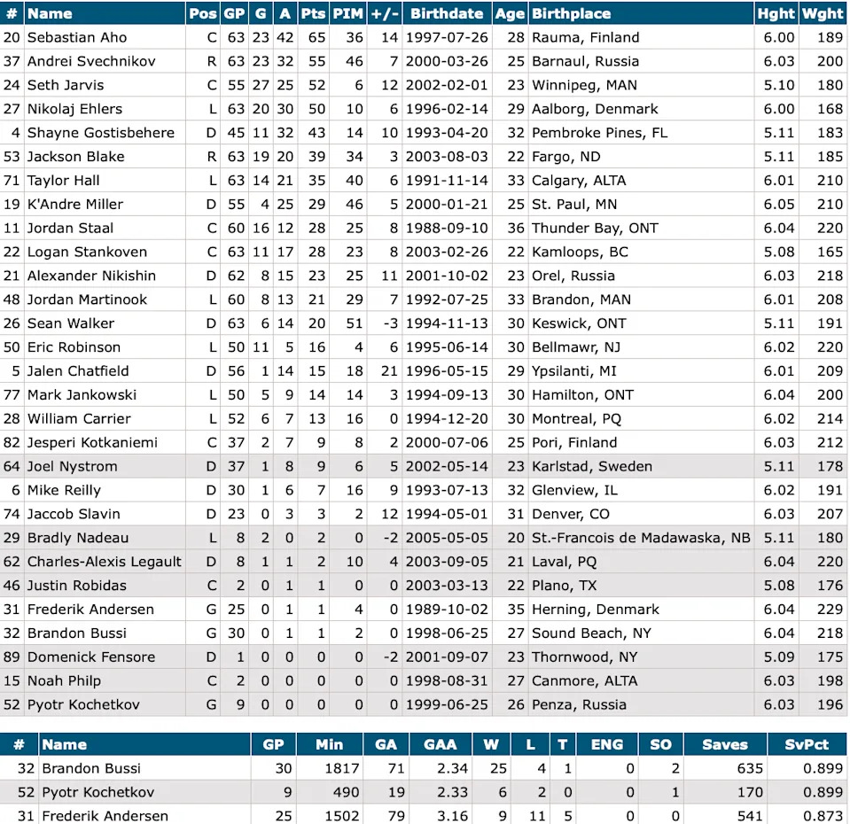 Andrei Svechnikov – Sebastian Aho – Seth Jarvis