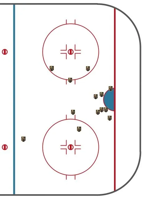 Over the last seven games, the Golden Knights have scored a total of 13 goals. Only the Calgary Flames have scored fewer over the span. Look at the map of where the goals have come from.
