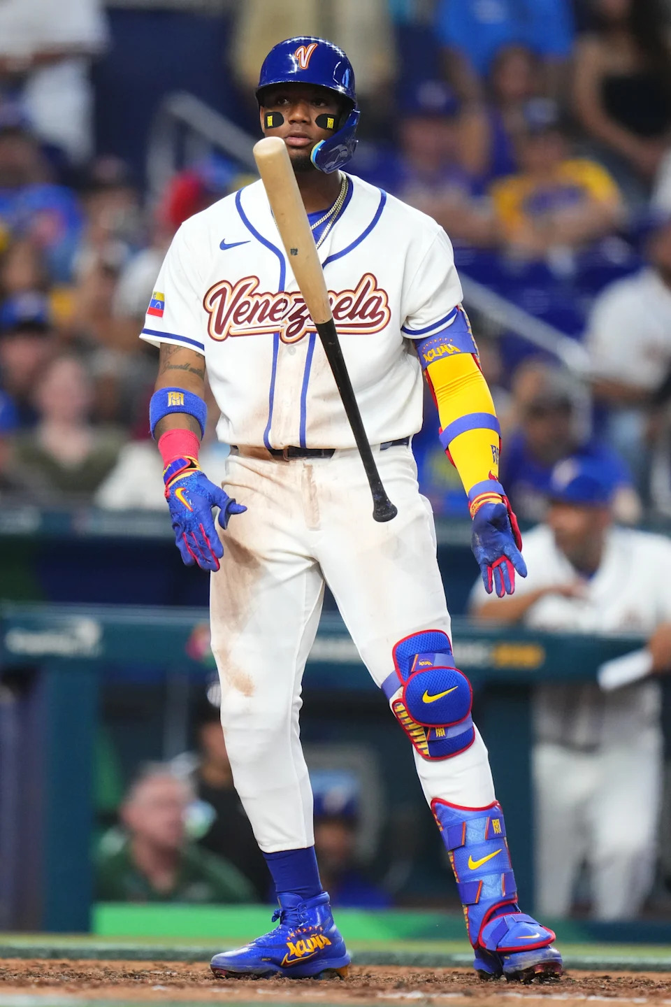 Ronald Acu–a Jr. of Team Venezuela throws hit bat after getting walked during the fifth inning of a 2026 World Baseball Classic Pool D game against Team Kingdom of the Netherlands at loanDepot park on March 6, 2026 in Miami, Florida.