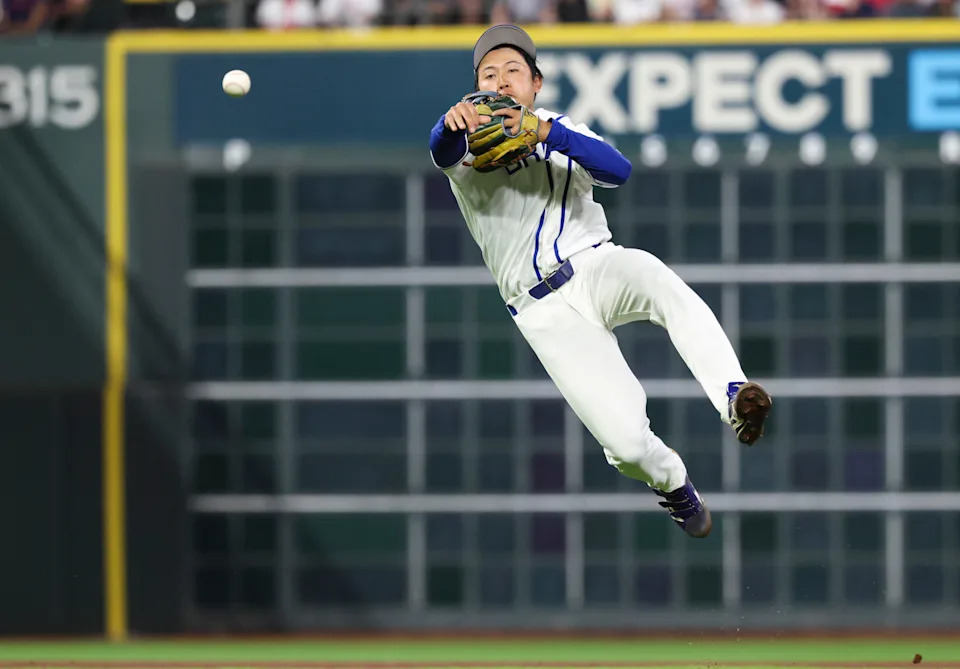 On Friday at Daikin Park, Canada players took the field for pregame batting practice wearing red long-sleeved hockey jerseys.