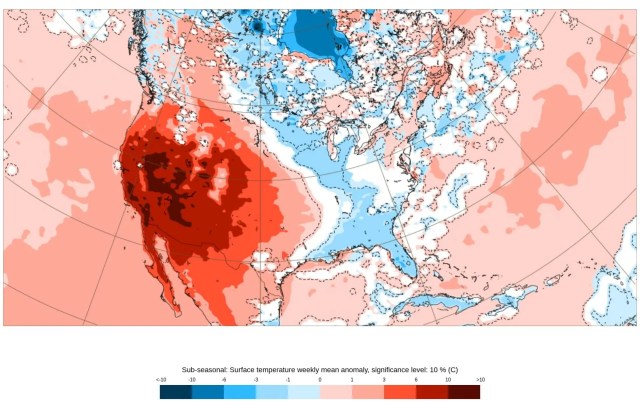 Temperatures will be several standard deviations above their twenty year average next week, with many mountain passes expected to be above freezing for several days. | Image: European Center for Medium-Range Weather Forecasts