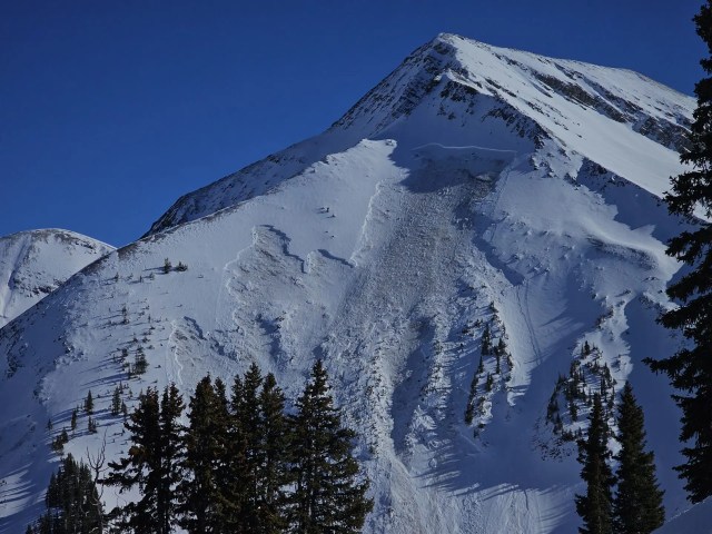 A few days of above freezing temperatures in the Aspen area in mid-January led to a large wet slab avalanche involving depth hoar at the ground. | Photo: Colorado Avalanche Information Center