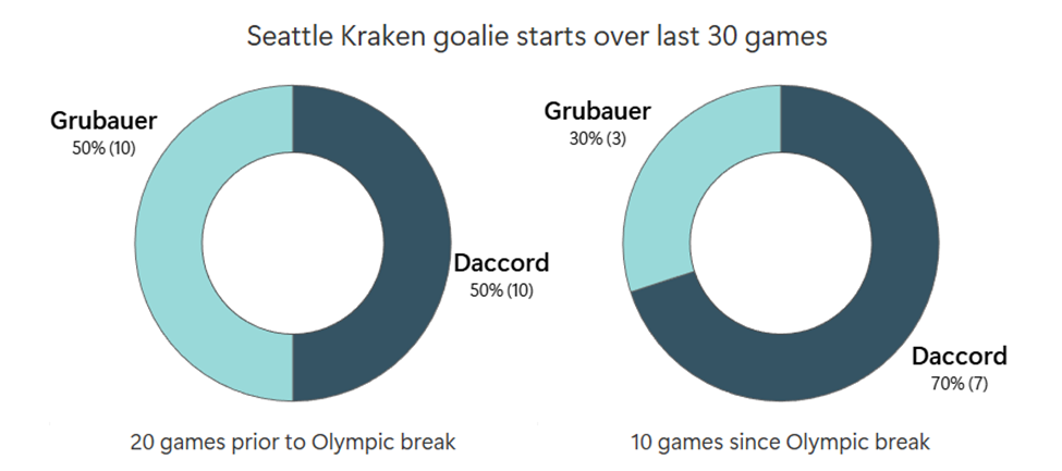 One thing that has been perplexing since the Olympic break is the goaltending rotation. Head coaches tend to get a little cagey or prickly when asked about it, but Joey Daccord has been getting most of the starts since the team returned.