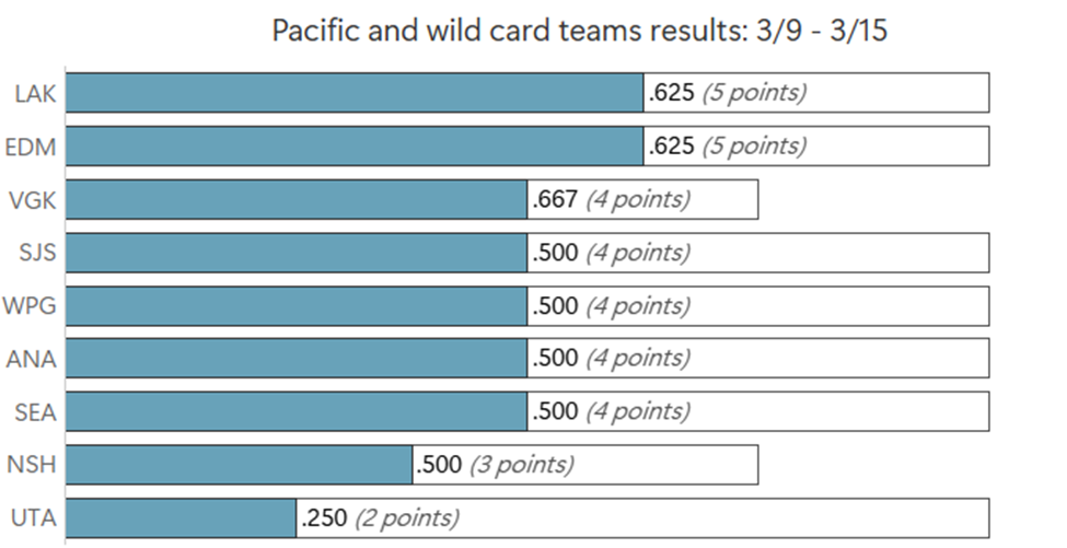 As far as the rest of the Pacific went over the last week, the Kraken only lost a tiny bit of ground to the Edmonton Oilers and Los Angeles Kings.