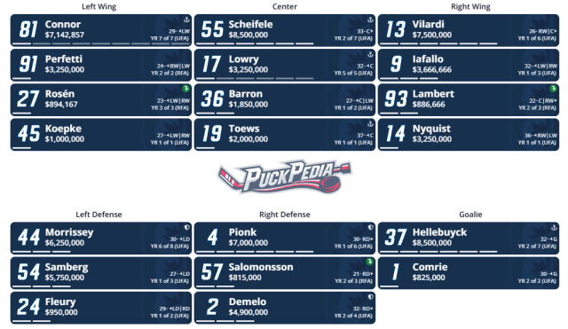 Here are the line up projections for both clubs via PuckPedia based on the most recent games:
