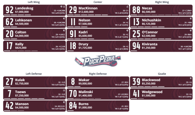COLORADO AVALANCHE LINE UP