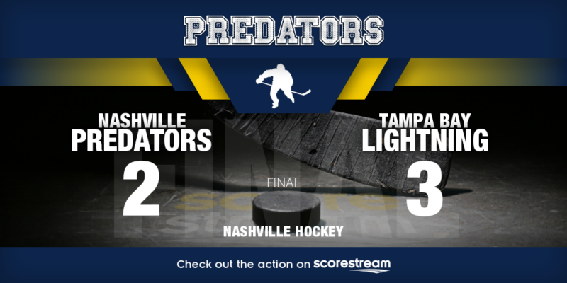 March 29, 2026 — Nashville had the right answer after Tampa Bay struck twice in 20 seconds early in the third, but the Predators couldn’t complete the comeback, dropping a 3-2 decision to the Lightning at Benchmark International Arena.