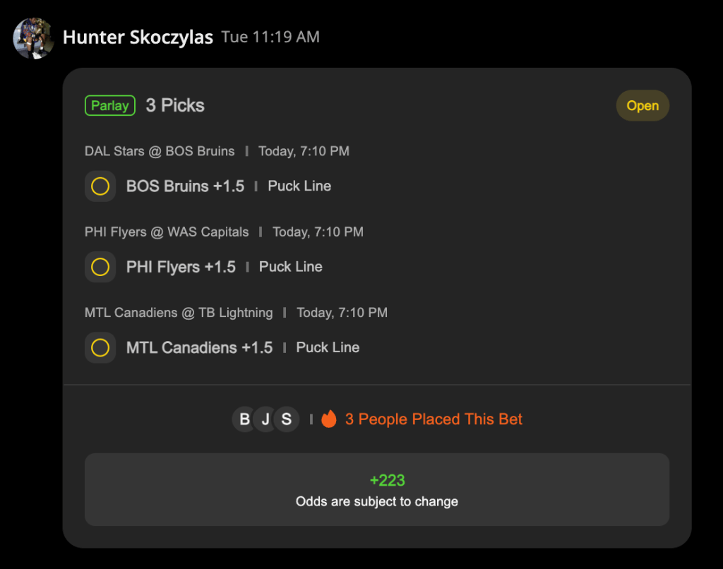DraftKings analysts post their picks in the DK Network betting group every day, and their best bets include NFL picks, NBA picks, MLB picks, NHL picks, WNBA picks, College Basketball picks, College Football picks, UFC picks, Golf picks and more! It’s easy to tail these bets by clicking the bet in the feed. You can then enter your wager amount and bet along with DraftKings analysts!