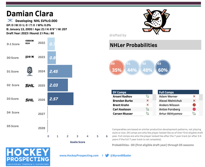 While his overall numbers with Brynäs IF have been more uneven this season, the underlying profile remains encouraging, as he is still saving more goals than expected. Lukas Dostal has cemented his status as the starter in Anaheim for years to come, which relieves pressure for Clara to climb the organizational ladder if his development continues on this path. Goalie prospects always carry risk, but Clara’s stock feels more likely to rise than fall from here, making him a strong buy candidate in dynasty formats before the price increases further.
