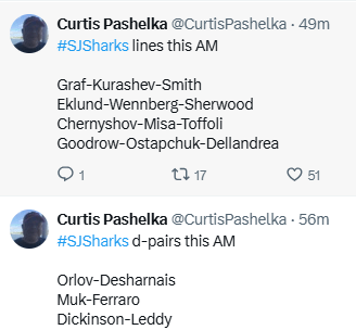 San Jose’s expected lines are below, with Celebrini’s absence chalked up to “maintenance” and his inclusion in the lineup likely coming in that 1C spot occupied by Kurashev at the morning skate.