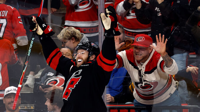 “Doesn’t mean anything, to be honest,” Svechnikov said of clinching the division title. “But it just means that all season we’ve been grinding away and all the boys just battling for each other and winning games. But like I said, it’s all about playoff.”