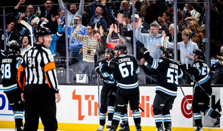 “You get the rally towels and the whiteout, or whatever it is, and it’s pretty fun. (The fans) are super into it and we want to bring a playoff series to Utah, so we’re doing everything we can,” said Mammoth forward Nick Schmaltz, whose two goals on the evening pushed his point streak to five games.