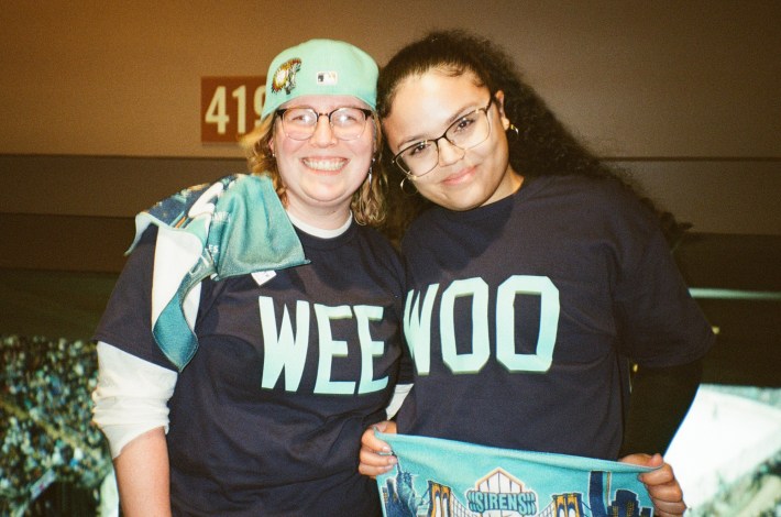 Ayden L., left, brought a bag full of Sirens merch to distribute to her friends.Heather Chen/Defector