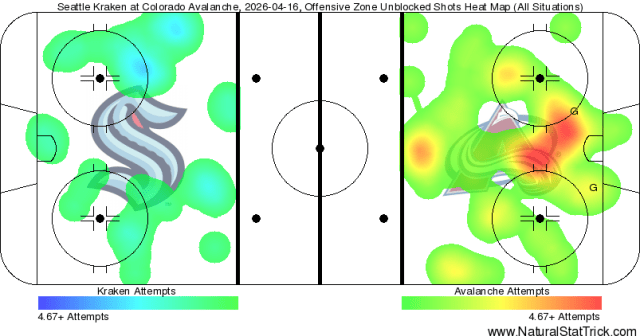 I don’t know what I was expecting, but this was…just pathetic. The Avalanche dressed almost nobody of note and they still absolutely kicked the Kraken up and down the ice. Just an abysmal final showing that was unfortunately emblematic of their last few games of the season; just an unending, crushing letdown.