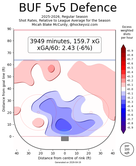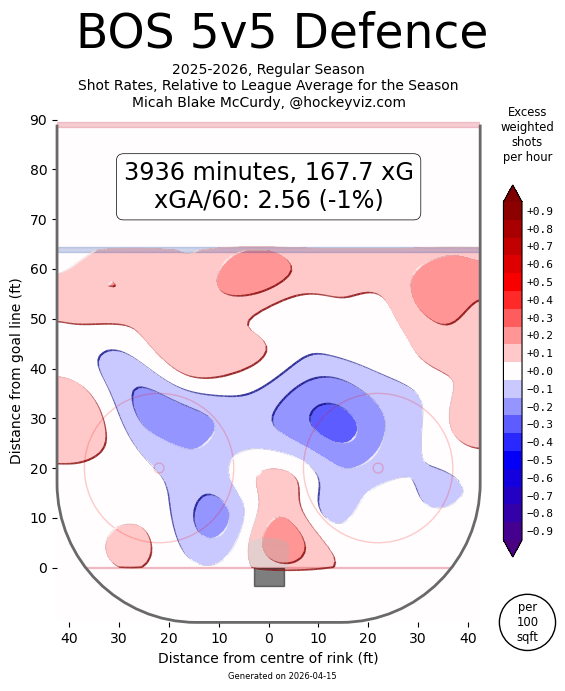 The Blue area is where the Sabres didn’t allow an excess of shots. Boston has to break into that in order to succeed.