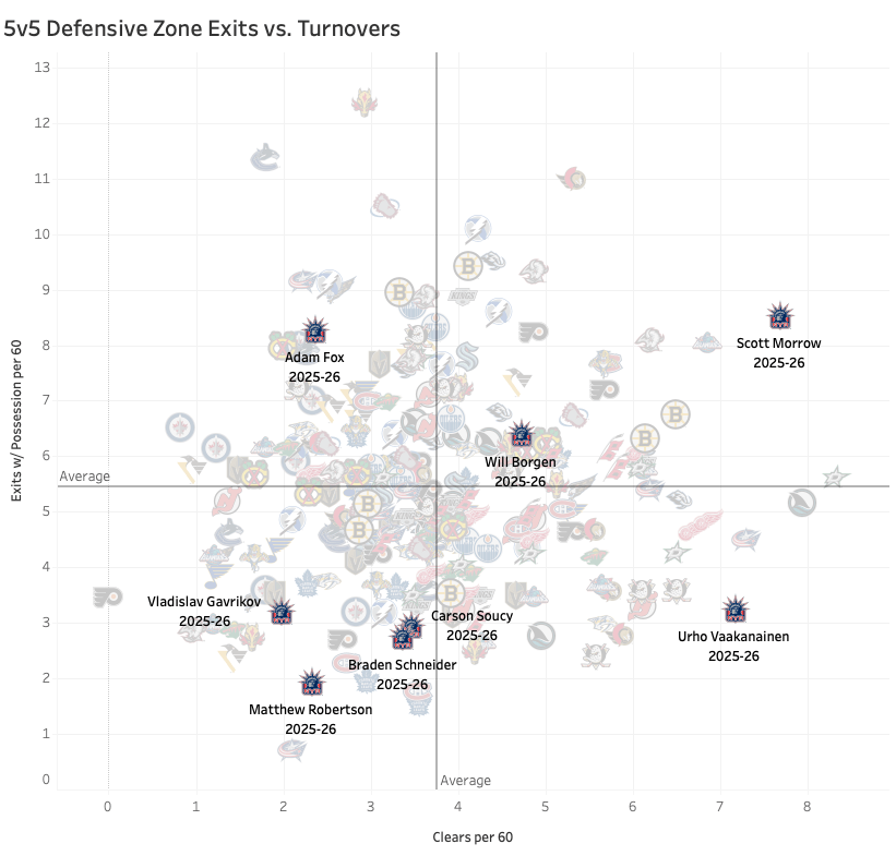 The need for skilled D, particularly on the left side, has been apparent. Outside of Adam Fox, the Rangers have very few defensemen who grade out as above average for zone exits and clearing passes, according to All Three Zones.