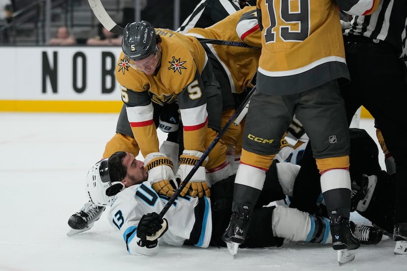 LAS VEGAS — At the media meal ahead of the Utah Mammoth’s inaugural playoff game against the Vegas Golden Knights, one writer who has attended many a playoff game at T-Mobile Arena gave us Utah reporters some advice: Don’t bring a full cup into the press box.