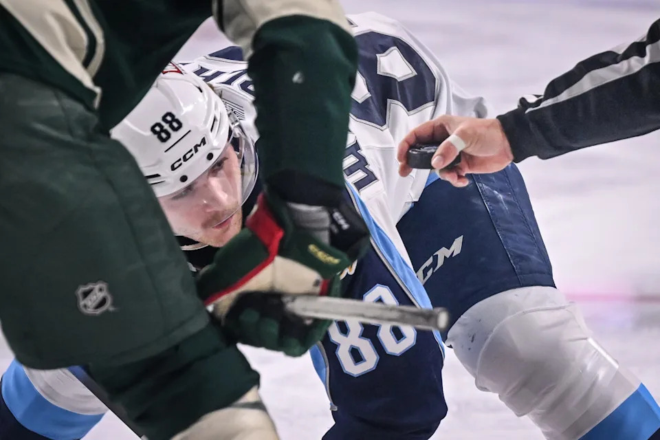 Milwaukee Admirals center Oasiz Wiesblatt (88) prepares to take a faceoff against the Iowa Wild in the second period of a game Wednesday, December 3, 2025, at the UWM Panther Arena in Milwaukee, Wisconsin.
