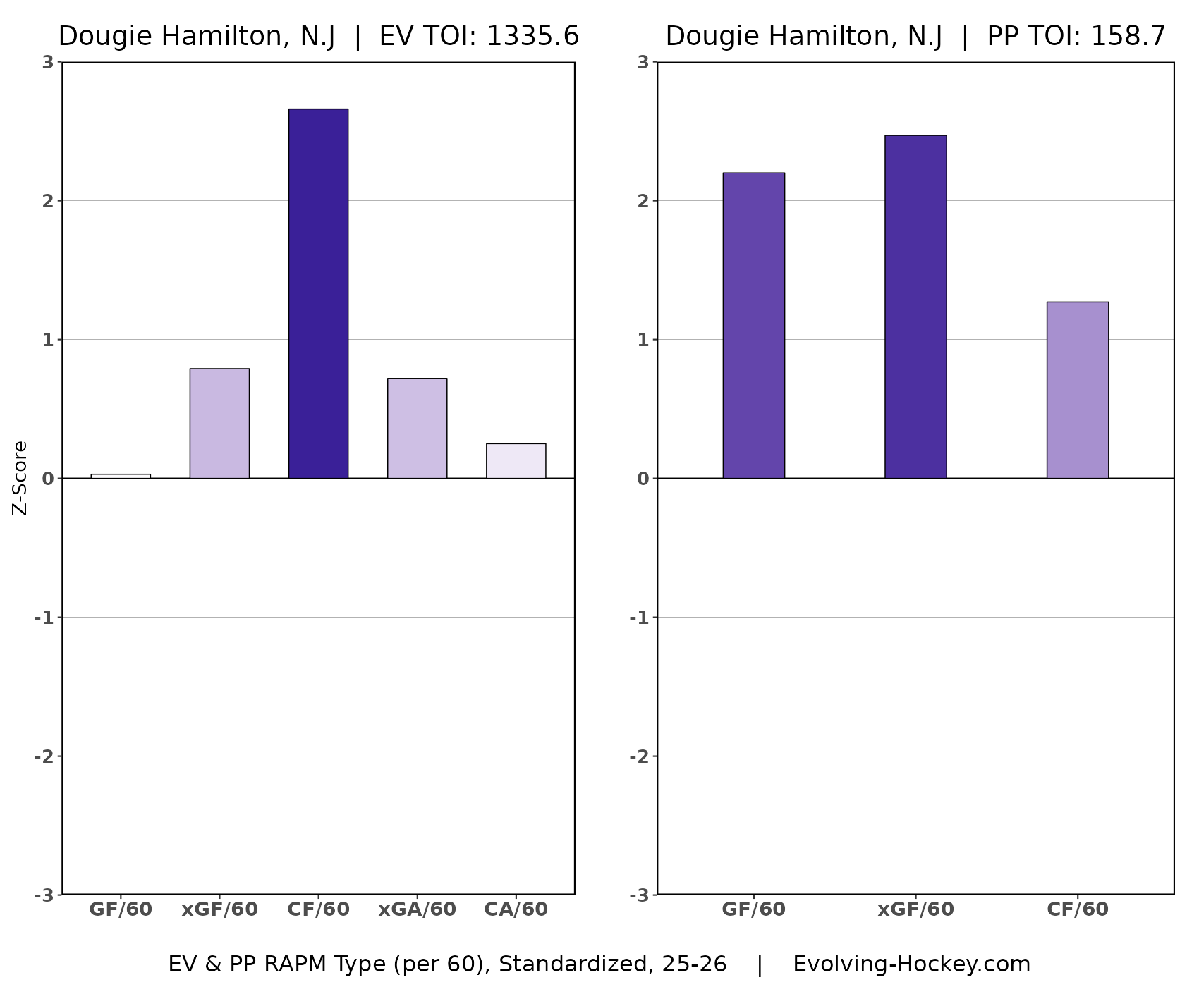 Hamilton had an expected goals share (xG%) of 53.49 percent through his first 40 games. The Devils were averaging 2.87 expected goals per 60 minutes during his five-on-five minutes and allowing just 2.5 per 60.