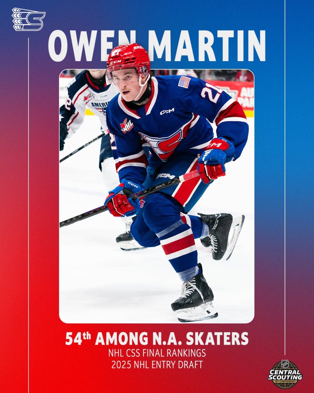 Martin, a 2007-born player from Oakbank, is in his second full season with the Spokane Chiefs, who are playing in the Western Hockey League quarterfinals against Victoria.