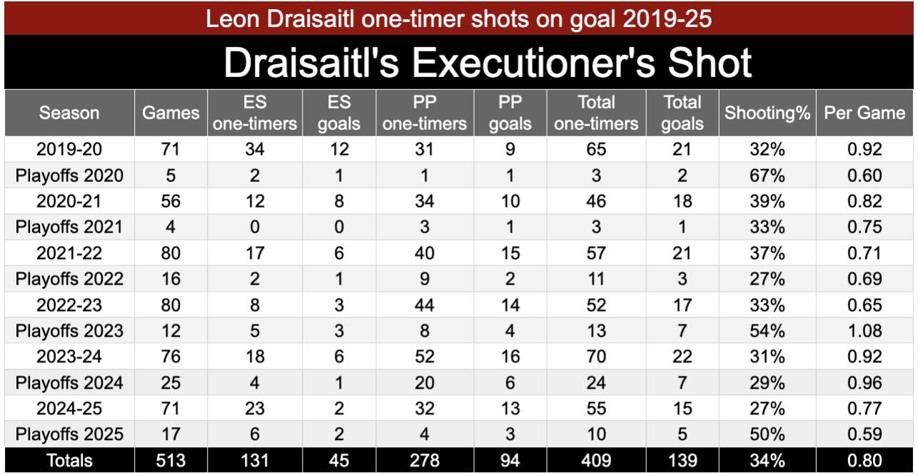 Draisaitl scores on 34 per cent of his Executioner’s Shots that hit the net, something we’ve been tracking at the Cult since 2019-20.