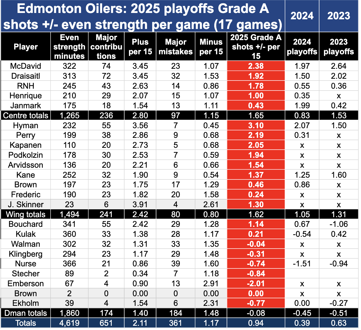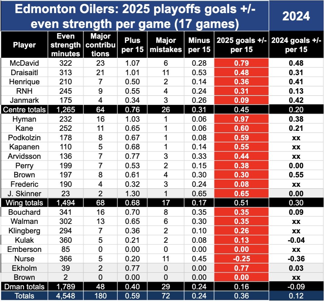 P.P.P.S. Oilers individual goals +/- at even strength in playoffs. Source: Cult of Hockey video review