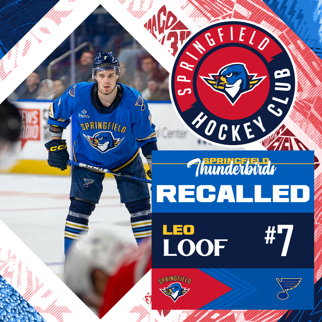 ST. LOUIS, MO – St. Louis Blues President of Hockey Operations and General Manager Doug Armstrong announced today the team has recalled defenseman Leo Loof from its AHL affiliate, the Springfield Thunderbirds.