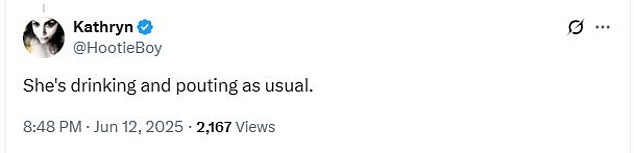 ‘She’s drinking and pouting as usual,’ a second added.Â