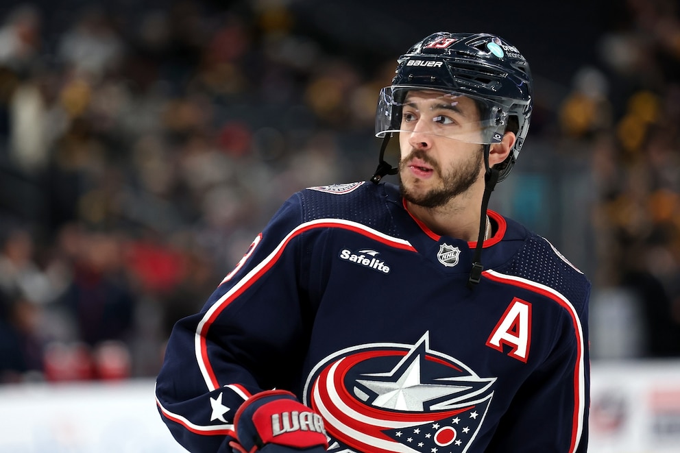 Johnny Gaudreau #13 of the Columbus Blue Jackets warms up prior to the start of the game against the Boston Bruins at Nationwide Arena on January 2, 2024 in Columbus, Ohio.