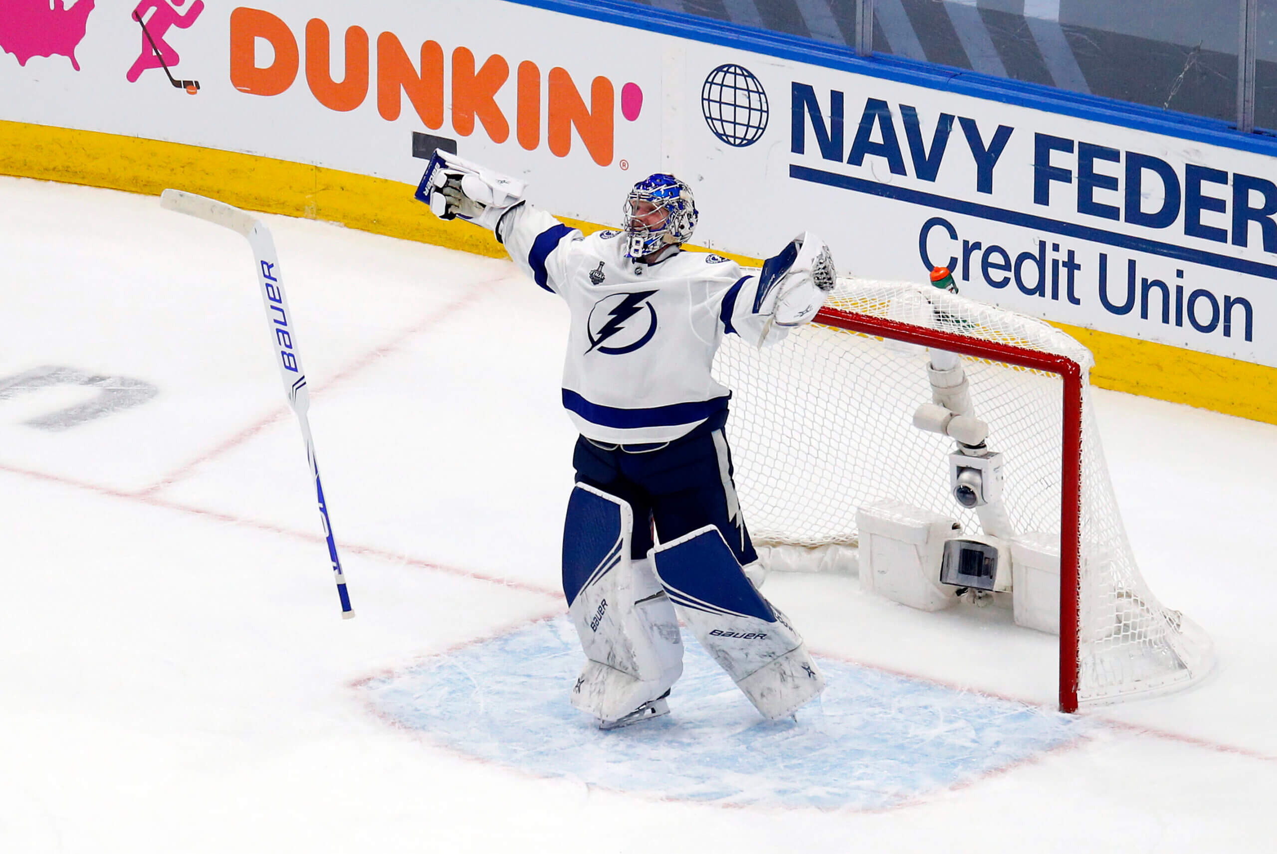 Andrei Vasilevskiy celebrates the first of the Lightning’s back-to-back Stanley Cups in 2020. (Bruce Bennett / Getty Images)No. 152012: Los Angeles Kings 4, New Jersey Devils 2
