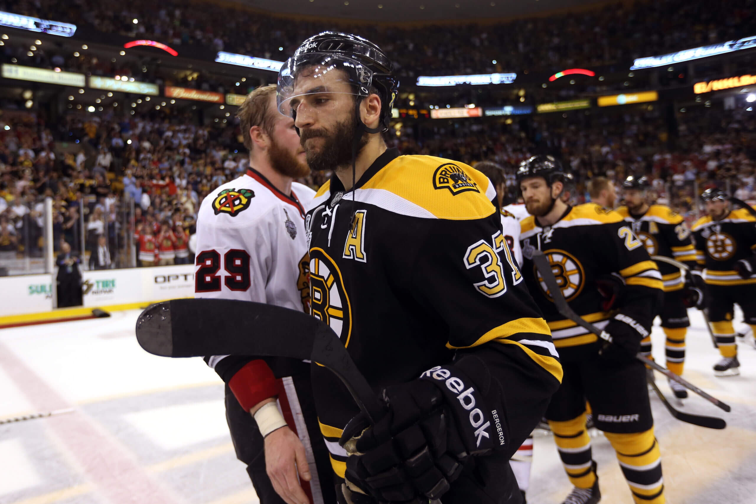 Patrice Bergeron played through a partially collapsed lung and other injuries in 2013. (Bruce Bennett / Getty Images)No. 82019: St. Louis Blues 4, Boston Bruins 3