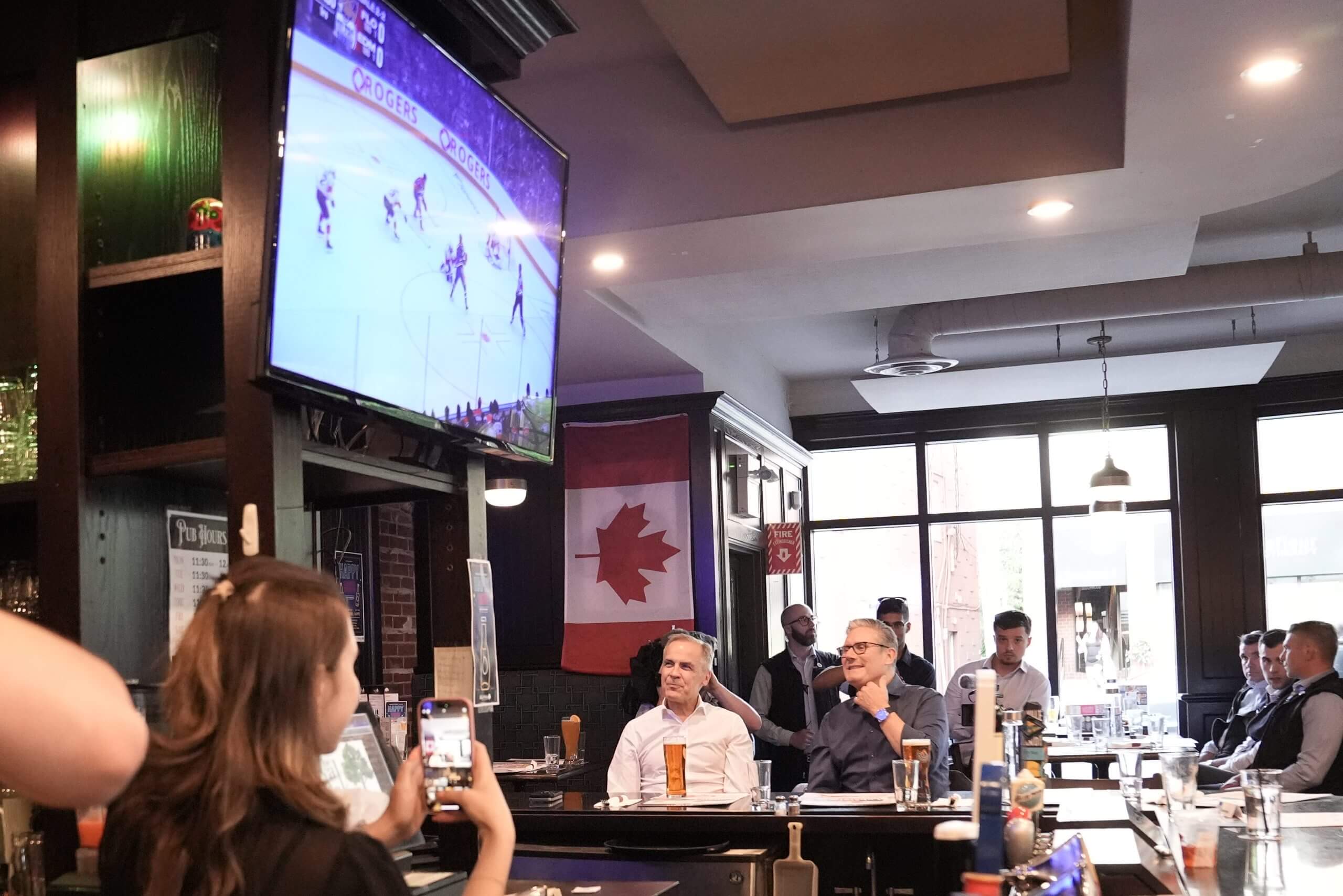 UK Prime Minister Sir Keir Starmer and Prime Minister of Canada Mark Carney caught some of the Oilers-Panthers game, which has had no problem finding an enthusiastic audience in Canada, less so in the U.S. (Stefan Rousseau – Pool / Getty Images)