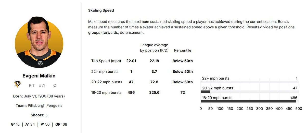While we’re stirring the pot on polarizing superstars, how about the Evgeni Malkin speed chart? Think we should save these in the player season reviews but we’re all having fun now.