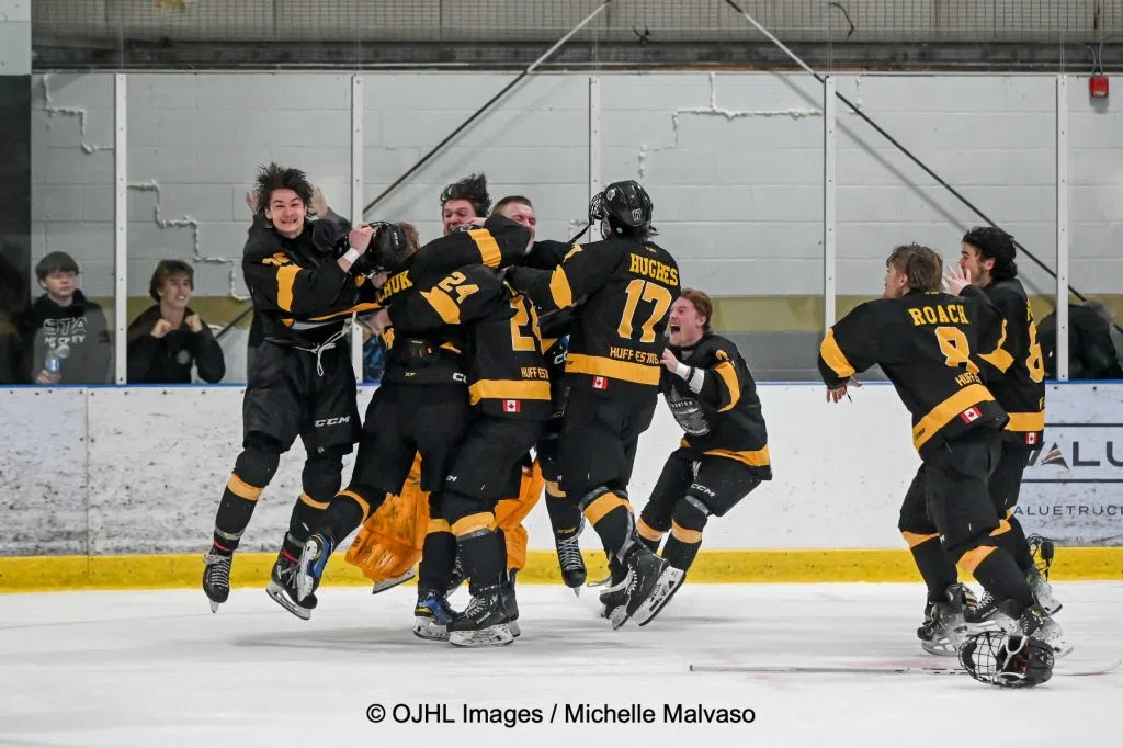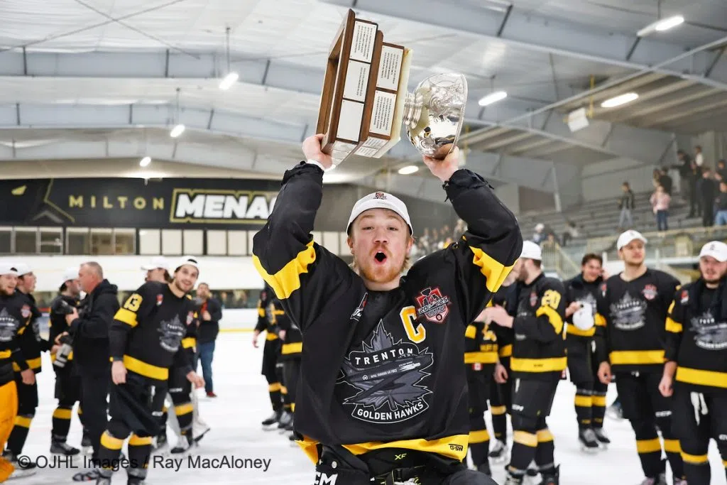 Taeo Artichuk scored the game winner (assisted by Cooper Matthews and Corbin Roach), as the Golden Hawks defeated the Milton Menace 3-2 in overtime in Game 6 of the OJHL Championship