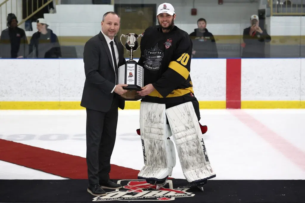 Goaltender Ryan Sanborn is named MVP of the playoffs (OJHL Images)