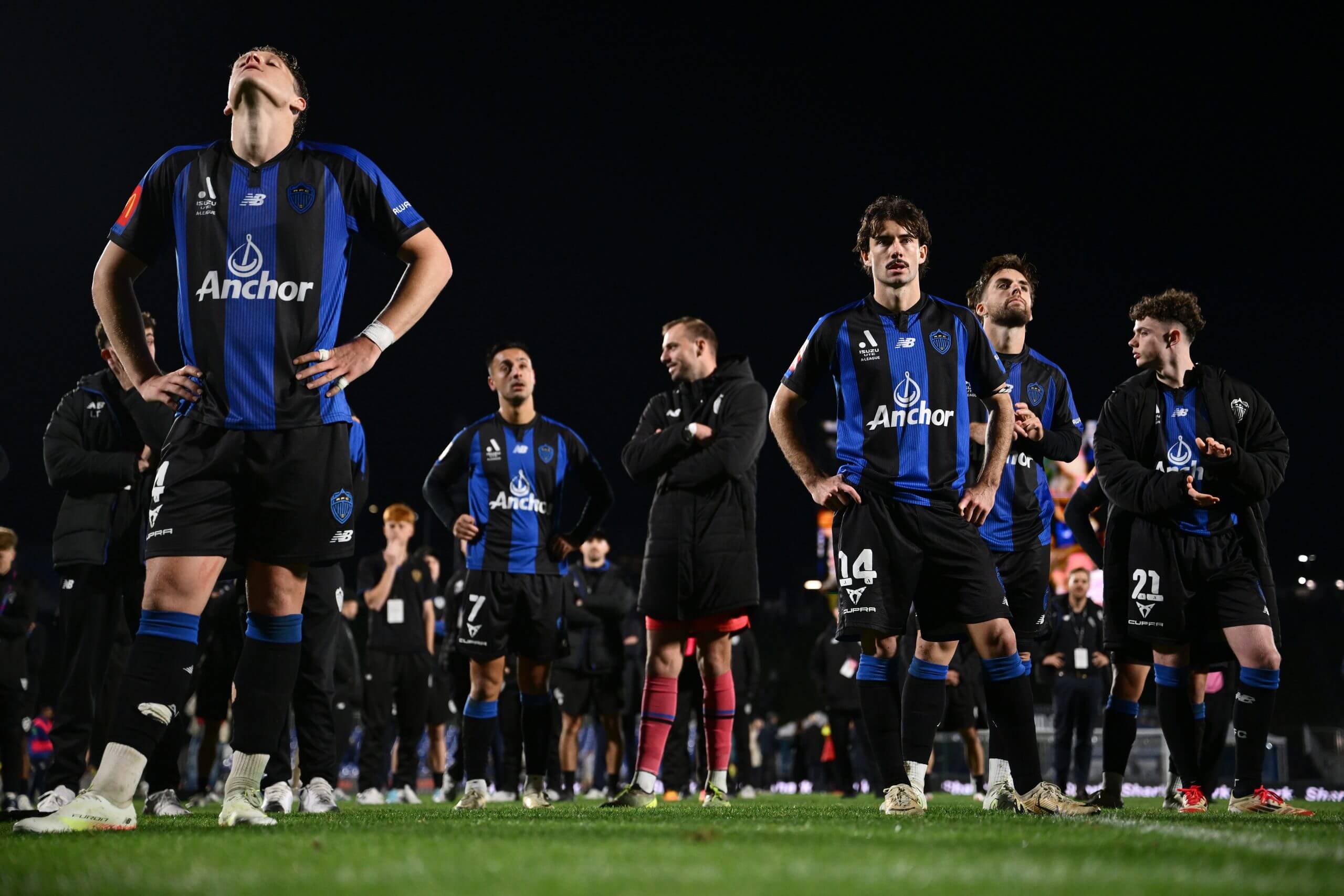 Auckland FC after losing the A-League semi-final against Melbourne Victory in May (Hannah Peters/Getty Images)