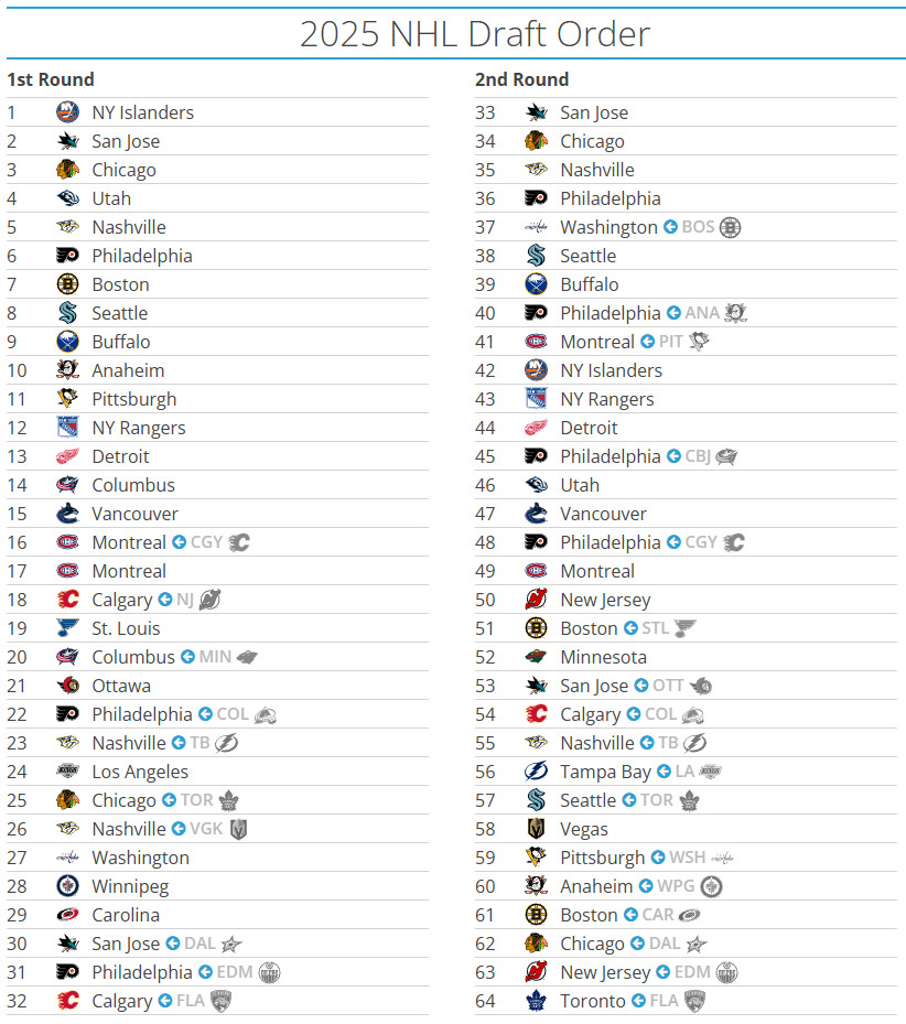 Here is the order for the first two rounds of the 2025 NHL Draft.