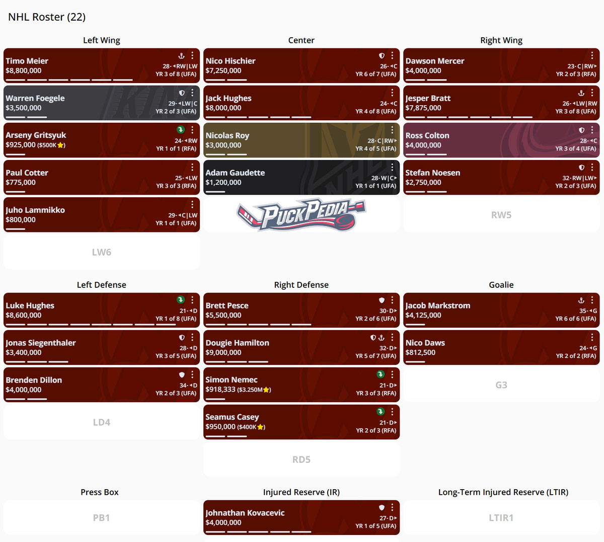 There’s an abundance of winger options available throughout the league, and unlike center or RHD, winger isn’t exactly a premium position. You can generally find guys and plug and play them into your lineup if you’re strong enough elsewhere in your lineup, which is another reason why I’d prioritize center this offseason.